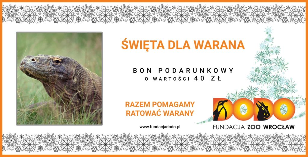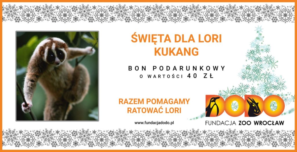 Bony podarunkowe DODO nie dość, że sprawiają radość to czynią dobro. Takim prezentem pomagasz ratować zagrożone zwierzęta na całym świecie. Możesz sprawić, że okres świąt będzie wyjątkowy zarówno dla Ciebie i Twoich bliskich jak i dla orangutanów, waranów, lemurów, lori, pingwinów czy manatów!