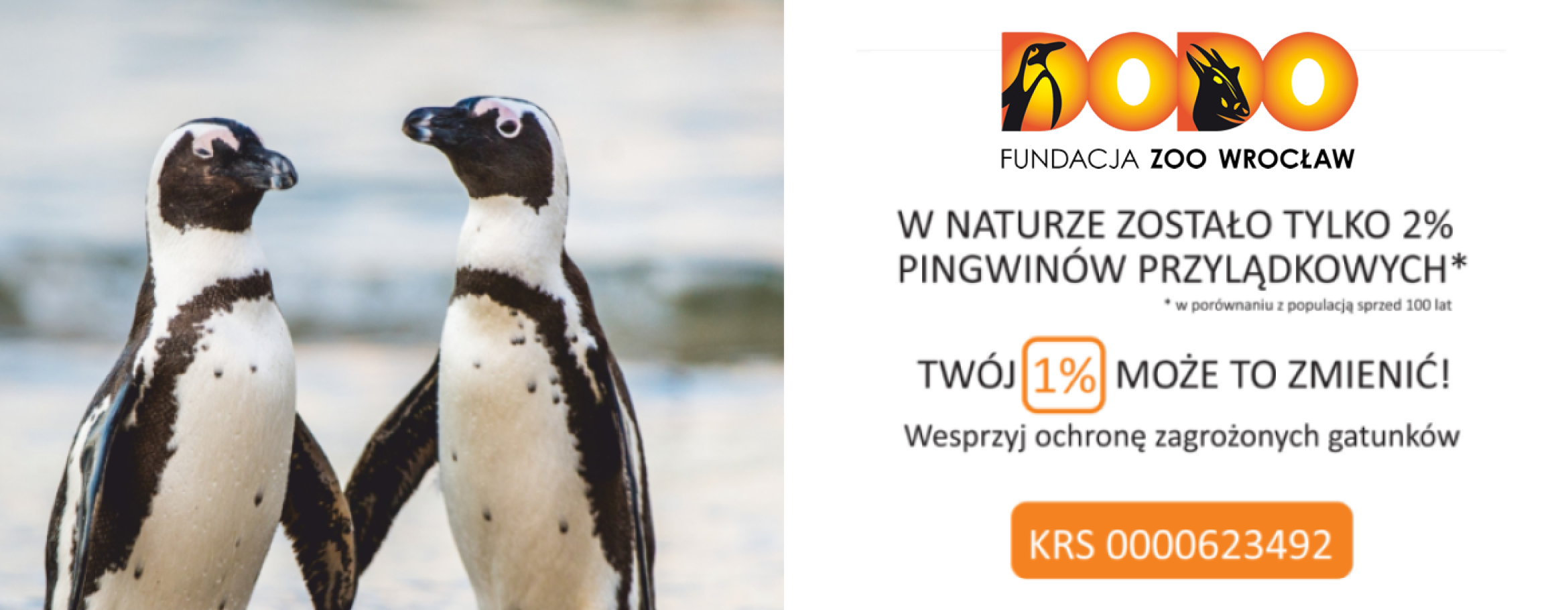 W naturze zostało tylko 2% pingwinów przylądkowych – TWÓJ 1% MOŻE TO ZMIENIĆ! Wesprzyj ochronę zagrożonych gatunków zwierząt – wpisz w deklarację podatkową nasz numer KRS: 0000623492