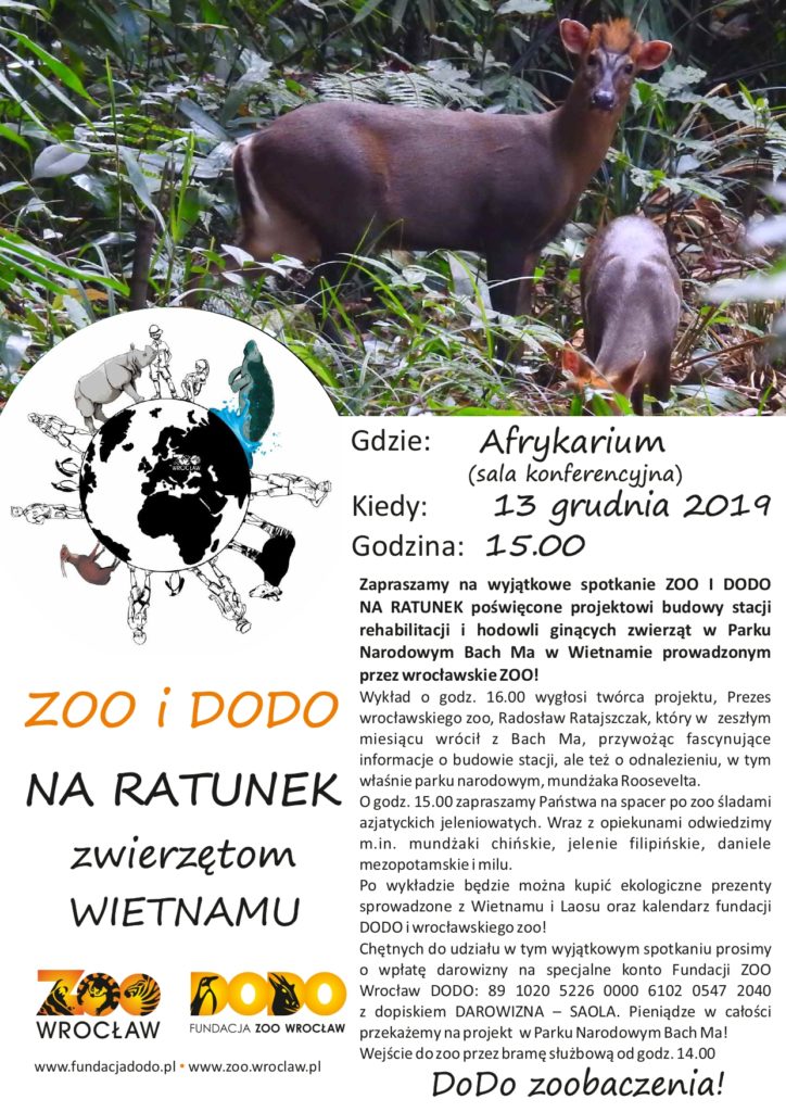 Serdecznie zapraszamy na spotkanie „Zoo i Dodo na ratunek zwierzętom Wietnamu”, które odbędzie się w piątek 13 grudnia we wrocławskim zoo.