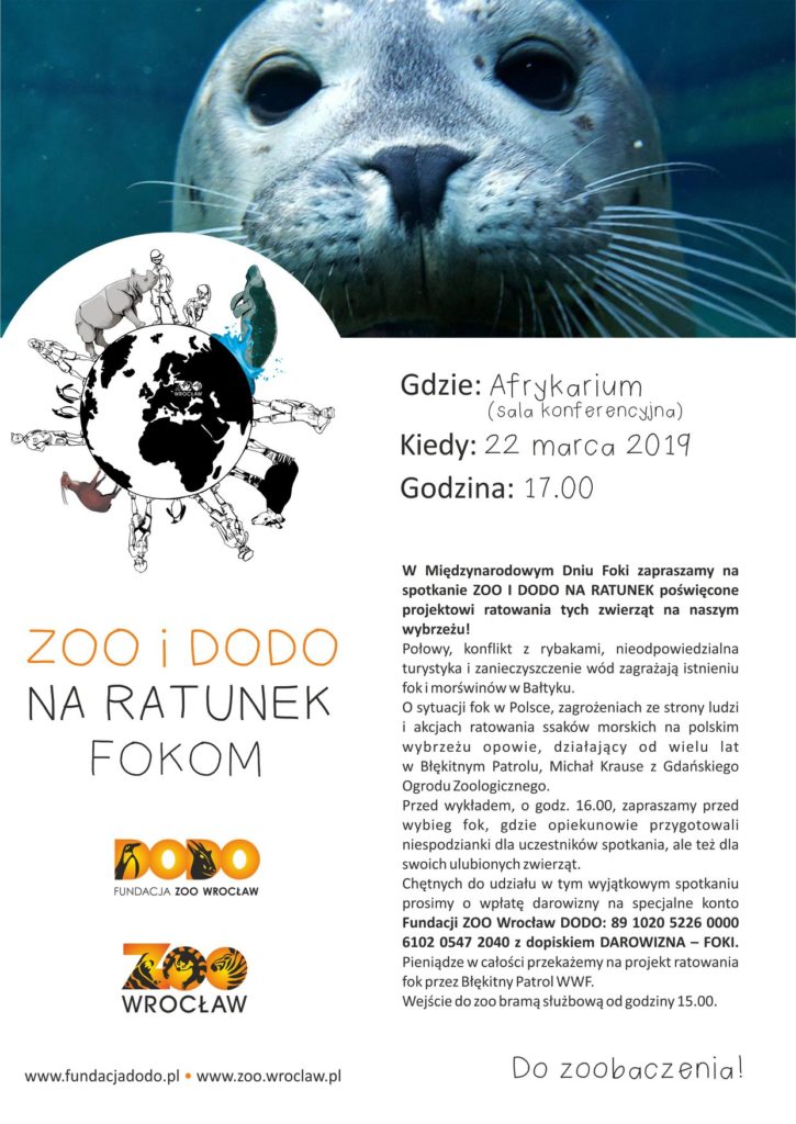 22 marca zapraszamy Was serdecznie na spotkanie „Zoo i Dodo na ratunek fokom”, które odbędzie się w Zoo Wrocław. 22 marca to dzień wyjątkowy bowiem to Międzynarodowy Dzień Foki!