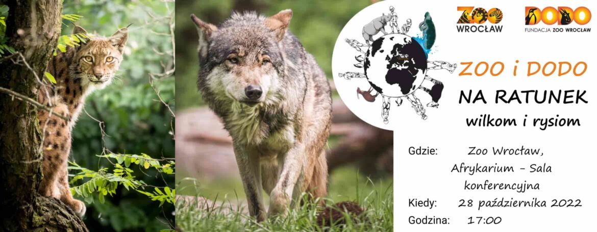 Zapraszamy na spotkanie Zoo i Dodo na ratunek poświęcone wilkom i rysiom. Gościć będziemy Stowarzyszenie dla Natury „Wilk”. Dr hab. Sabina Pierużek-Nowak oraz dr hab. inż. Robert Mysłajek przedstawią najnowsze informacje o życiu polskich populacji wilków i rysi. Zapraszamy na prelekcje do sali audytoryjnej w Afrykarium o godzinie 17:00. Po wykładzie udamy się w okolice wybiegów wilków i rysi w naszym zoo, by obserwować te zwierzęta kamerami termowizyjnymi .