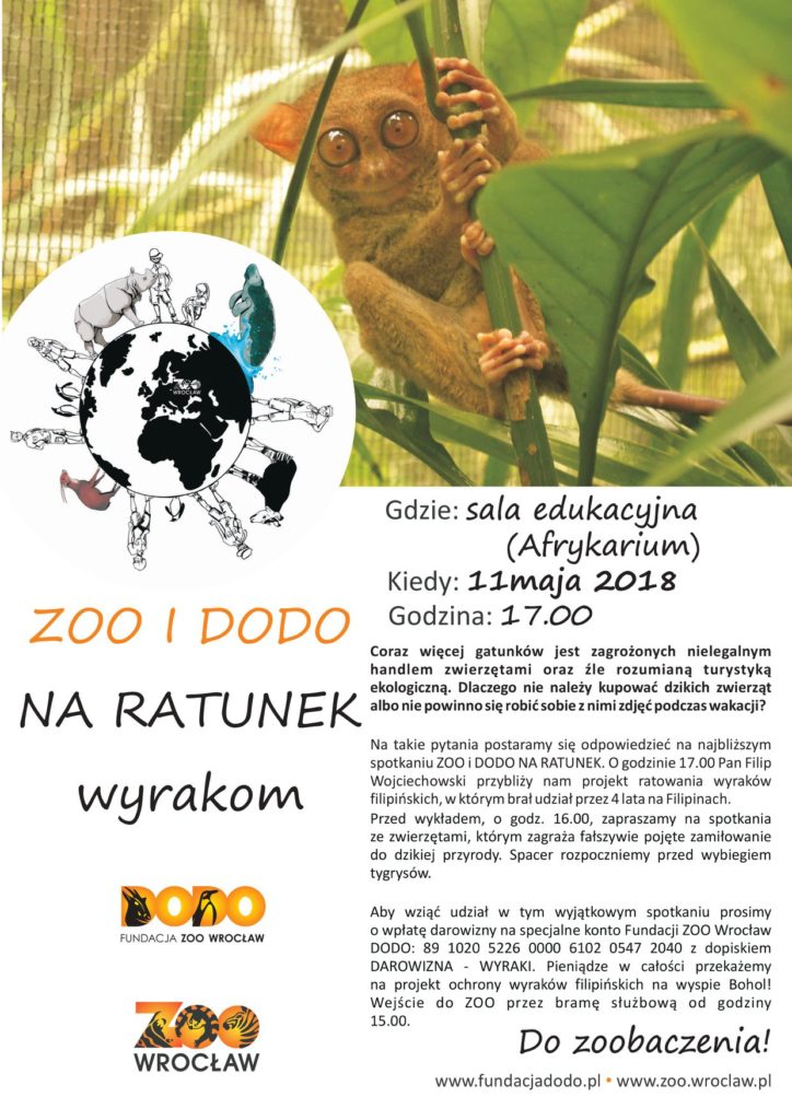 Chcemy, aby spotkania „Zoo i Dodo na ratunek” pomagały ratować ginące gatunki zwierząt, więc nie pobieramy opłat za wstęp do zoo, lecz prosimy Państwa o wsparcie tego celu. Przed spotkaniem prosimy o wpłatę darowizny na specjalne konto Fundacji Zoo Wrocław Dodo: