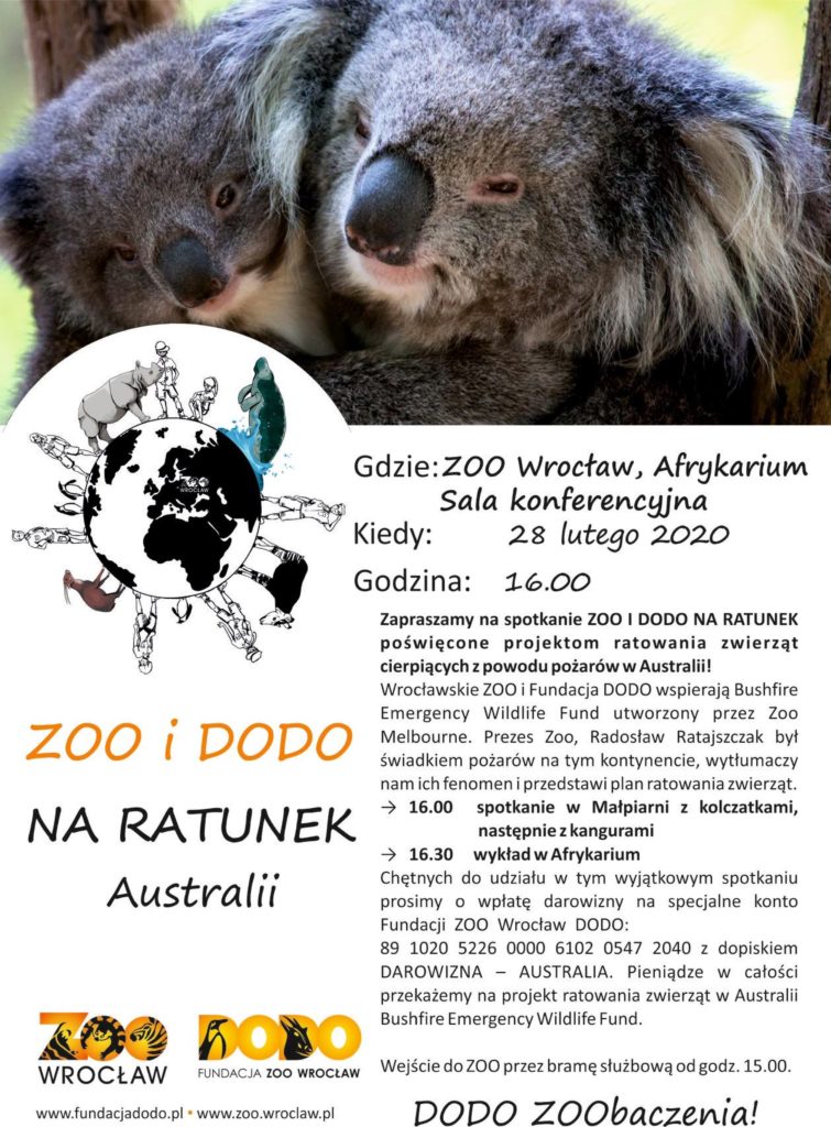 Serdecznie zapraszamy na wyjątkowe spotkanie „Zoo i Dodo na ratunek zwierzętom Australii”, które odbędzie się we wrocławskim zoo w piątek 28 lutego!